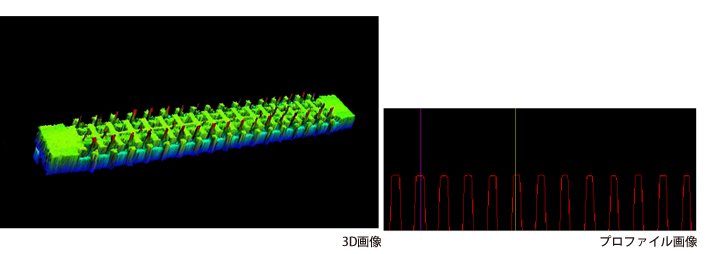 コネクタピンの形状不良で引き起こされる電気的接合不良を防ぐため、コネクタピンのコプラナリティ・ピッチ寸法・形状計測検査を行います。